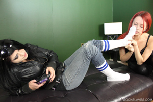Mistress Jane comes back home with her lesbian slave girl and she can't wait to smell and taste on the foot sweat on her Mistress's sweaty white socks