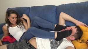 Mistress Kaelin teases her slave girl with her socks and make her worship on them before removing her socks to lick all over her bare feet